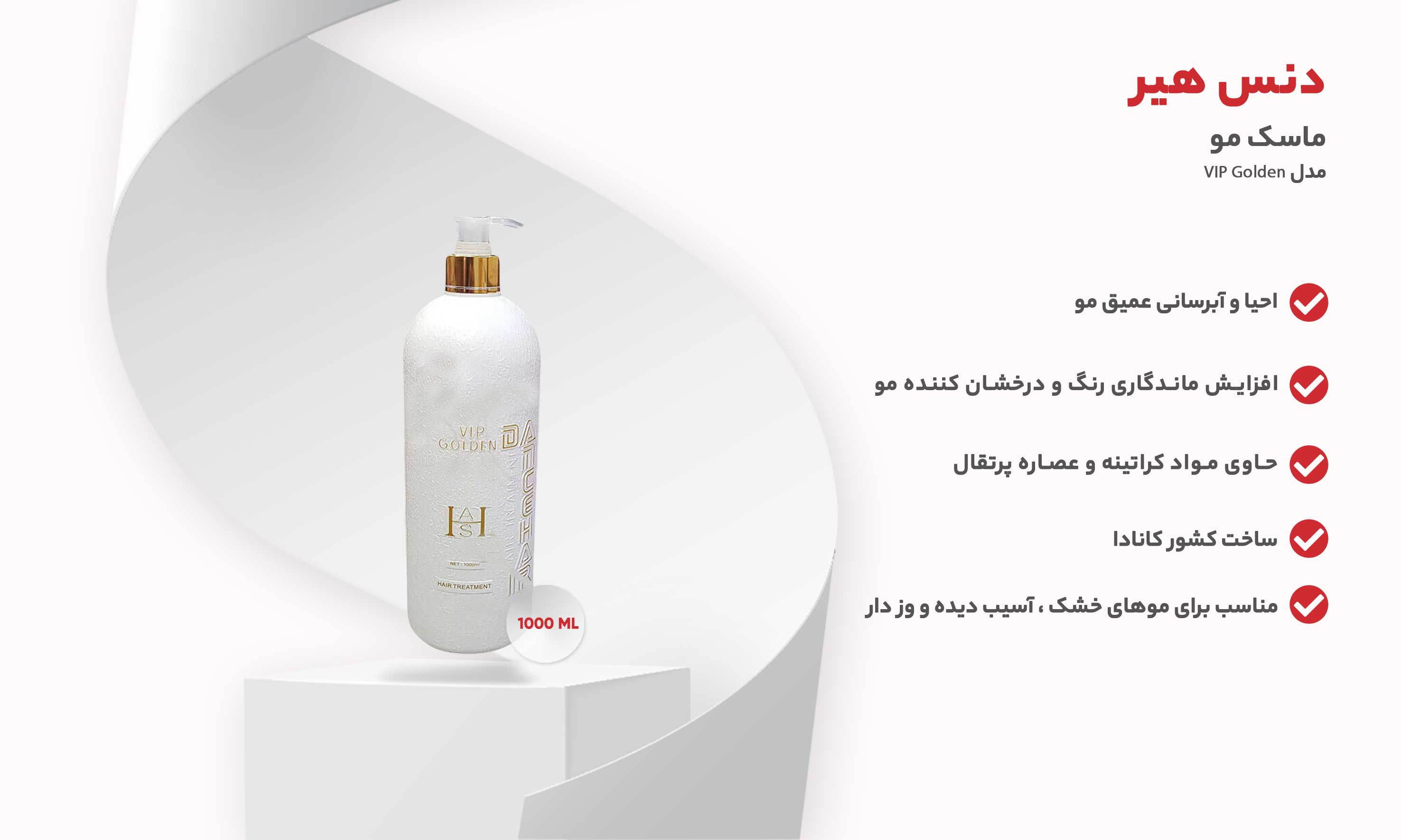 ماسک موی دنس هیر یک نوع ماسک داخل حمام ، با آبکشی بوده که جهت لخت کنندگی، احیای فوری مو های آسیب دیده و از بین بردن وز مو میباشد. ماسک مو دنس هیر کاملا بدون سولفات بوده به همین جهت برای استفاده مو های کراتین شده و ریباندینگ شده گزینه کاملا مناسبی میباشد. این ماسک مو در حال حاضر یکی از جدید ترین و قوی ترین روش احیا و ترمیم مو میباشد چرا که 6 بار استفاده از این محصول معادل یک بار عمل کراتین احیا میباشد.ساخت کشور : کانادا حجم 1000 میلی گرم